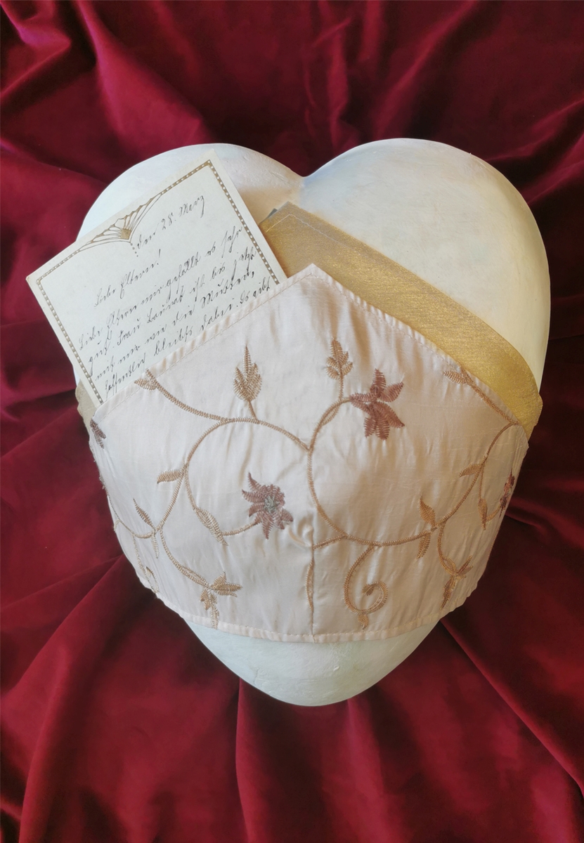 Diese Urne trägt eine handgenähte Manschette aus Seidentaft mit Lilienstickerei und einer integrierten Tasche für Beigaben wie Fotos oder Briefe. Diese Urne ist 2011 zur “schönsten Urne Deutschlands” gekürt worden.