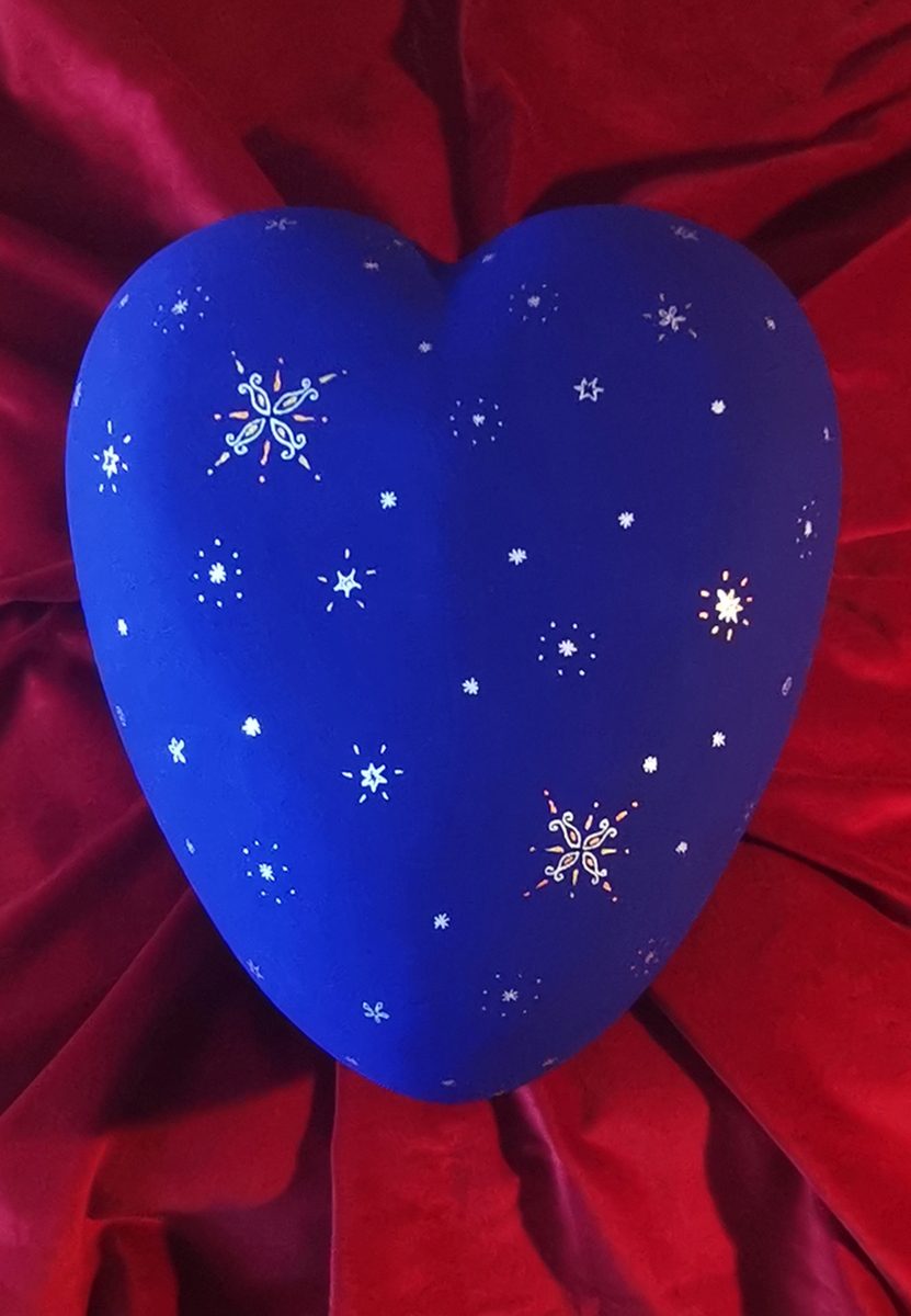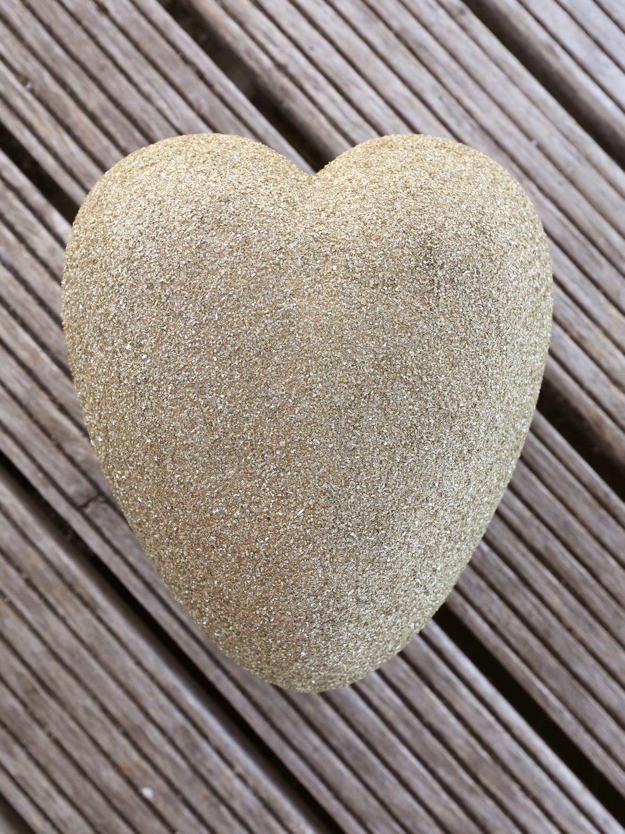 Ich kann mir vorstellen, dass Sie die Oberfläche des Herzens selbst gestalten oder bemalen. Ich habe die Erfahrung gemacht, dass es tröstend und wohltuend sein kann, etwas für die Verstorbenen zu gestalten.